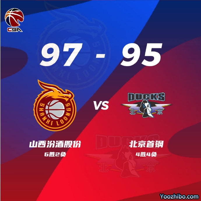 24直播网讯:北京时间10月27日,CBA常规赛第8轮山西汾酒股份对阵北京首钢,此役双方鏖战四节,首钢最后一攻曾凡博被逼出失误,最终山西97-95险胜首钢。