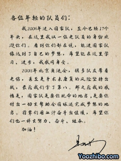 而作为国家队老大哥的易建联,此时的他也在不远万里的美国疗伤,在得知中国男篮要集训后,始终不忘给新入选国家队的年轻球员写信加油,勉励他们进入这个集体来之不易,要努力奋斗,完成全国球迷的心愿。球员胡明轩带领队友们宣誓入队,而主教练杜锋代读易建联写给球员们的一封信。
