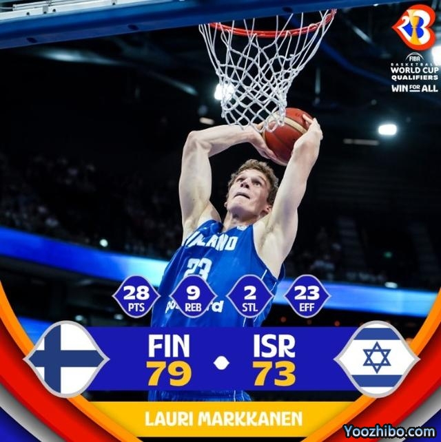 24直播网讯 8月26日讯在今天结束的一场世预赛第四窗口期的比赛中,芬兰79-73击败以色列。