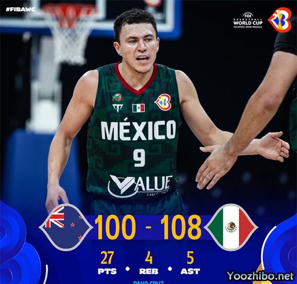 24直播网讯 北京时间8月31日讯 男篮世界杯排位赛,墨西哥男篮对阵新西兰。小组赛新西兰排在C组第三,墨西哥D组第四。一开场,双方势均力敌,比分交替领先,墨西哥内外开花持续发力打出9-0的攻击波取得两位数优势,新西兰连投带罚拿分顽强咬住。克鲁兹三分两连击,双方围绕10分分差展开拉锯战,克鲁兹压哨三分再中帮助墨西哥半场结束57-41领先新西兰。下半场,克鲁兹和勒阿法各自命中三分,墨西哥延续火力一度将优势扩大到19分,新西兰及时回暖连中三分完成11-0的攻击波缩小分差,墨西哥连投带罚稳住10分优势,兰奇连中三分续命,克鲁兹三分强势回应。最终,墨西哥力克新西兰,获得首场胜利。