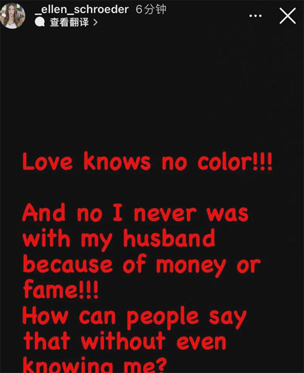 针对外界的声音,作为施罗德爱人的艾伦霸气回怼,称:“爱不分肤色!我从来没有因为金钱或者名声而和我的丈夫在一起,人们怎么能在不了解我的情况下就这样说呢!”