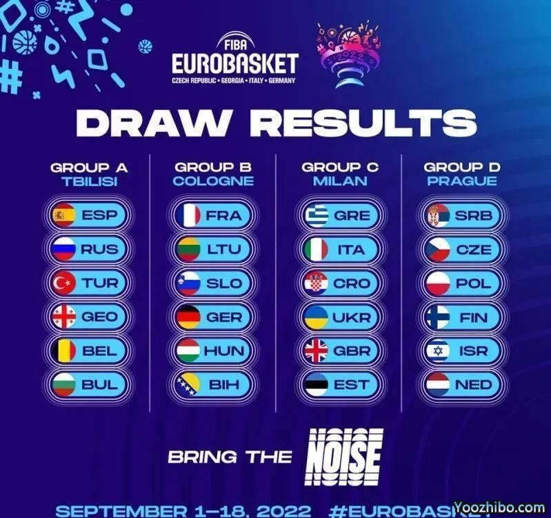 2022年男篮欧锦赛小组赛赛程表一览