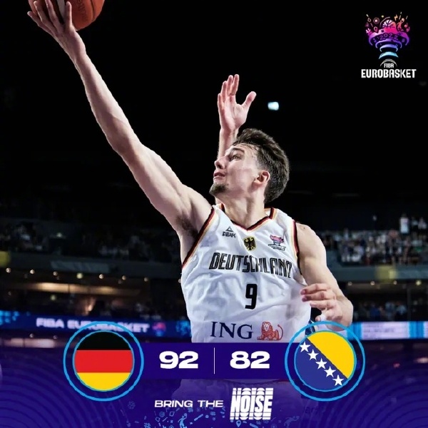 在今天结束的一场欧锦赛B组的小组赛中,德国92-82逆转击败波黑,取得两连胜。半场结束时,波黑47-42暂时领先德国。比赛来到第三节,德国单节打出28-11,顺利逆转局势。最终,德国依靠末节的稳定发挥获得了比赛胜利。