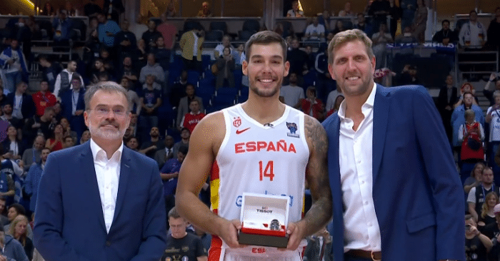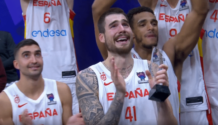 威利-埃尔南戈麦斯场均拿到17.2分6.9篮板1助攻,凭借出色的表现入选最佳阵容,带队夺得冠军并且夺得MVP;胡安则是夺得决赛MVP;威利获MVP时,胡安为兄弟鼓掌庆祝,喜极而泣太开心,埃尔南戈麦斯兄弟成今年欧洲杯大赢家。