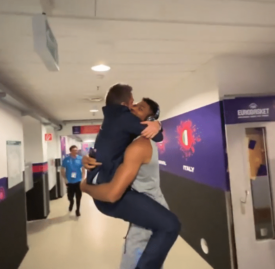 24直播网09月12日,男篮欧洲杯淘汰赛出现罕见一幕,意大利主帅被驱逐后哭了,晋级8强后,波切科情绪激动疯狂庆祝,在球员通道熊抱并且亲吻字母哥疯狂庆祝。