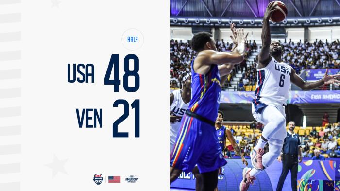 美洲杯小组赛,美国队上半场48-21领先委内瑞拉27分;不过由于比赛场馆出现重大故障,球馆漏水严重,本场比赛被迫延期;FIBA美洲杯官方和美国队官方都宣布了该消息。