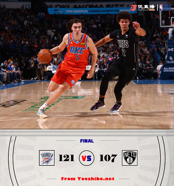 NBA常规赛继续进行,雷霆主场迎战篮网,两队此前均取得两连胜,雷霆33胜35负排名西部第十一,篮网则是39胜29负位列东部第五。比赛开局,雷霆率先发力,打出一波7-0的小高潮,但随后进攻端断电,篮网则找到进攻状态,反超并建立两位数的领先优势。次节两队交替取分,分差在十分上下浮动,半场结束篮网62-52领先。易边再战,场上形势风云突变,雷霆外线连续投中,篮网则运动战连连失准,雷霆单节打出38-20,逐渐反超并领先到8分进入第四节。末节上来,雷霆稳扎稳打维持差距,篮网没能再追上比分,最终雷霆121-107逆转战胜篮网,取得三连胜。