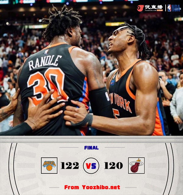 NBA常规赛激战正酣,尼克斯和热火正面对话,尼克斯近期豪取七连胜,目前以37胜27负暂列东部第5位,热火上场输球后战绩更新为33胜30负,目前排在东部第7位。此役一上来双方你来我往比分紧咬,兰德尔飚中4记三分单节狂轰20分,巴特勒和希罗短暂回应,但尼克斯火力全开单节斩获37分,首节结束时尼克斯领先6分,次节回来,奎克利突然发力单节贡献10分,尼克斯稳扎稳打继续扩大优势,半场战罢,尼克斯71-56牢牢占优。下半场回来,阿德巴约和希罗内外结合,两人联手率队不断缩小分差,末段尼克斯及时回应稳住局势,三节结束后尼克斯依然领先8分,末节上来,尼克斯进攻再度停滞,热火打出9-0小高潮一度反超,决胜时刻兰德尔跳投打成2+1,希罗连得4分再次反超,无奈兰德尔上演极限三分准绝杀,最终尼克斯险胜对手。