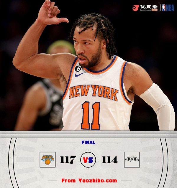[腾讯全场集锦] 布伦森38+7+6 兰德尔25+13 尼克斯击败马刺取3连胜