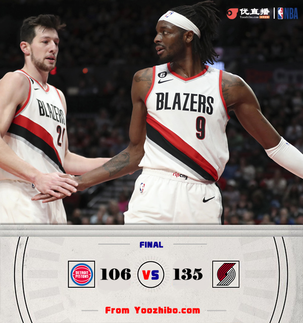 NBA常规赛,开拓者主场迎战活塞。开拓者目前西部第八,活塞东部垫底。上半场,开场阶段双方势均力敌,比分交替领先,开拓者内外开花打出8-1取得优势,活塞强攻内线连续拿分,但此后却突然断电,格兰特独得8分引领球队15-0的进攻高潮以61-52领先结束上半场。下半场,开拓者牢牢占据场上主动,格兰特继续高效输出带队将分差拉开到20分以上,活塞大势已去无力回天。最终开拓者大胜活塞,主场过关。