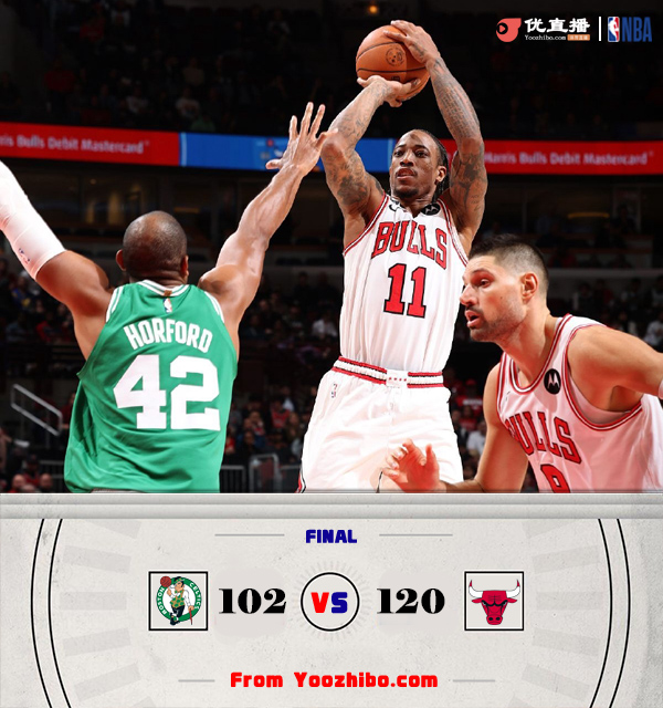 [腾讯全场集锦] 德罗赞23+5 武切维奇18+23 獭兔26+8 公牛终结绿军三连胜