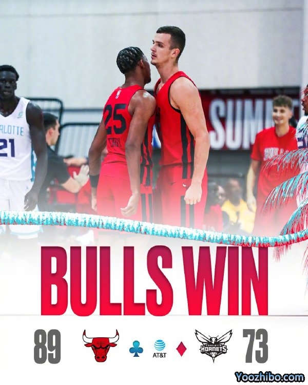 NBA拉斯维加斯夏季联赛,公牛今日对阵黄蜂,前者上场比赛战胜猛龙,后者则是取得两连胜。比赛上来两队打得十分胶着,场上比分也是交替领先,但首节后半段公牛逐渐开始占据主动并取得领先,次节黄蜂彻底陷入低迷,半场结束时他们已经落后了18分。易边再战,双方开始保持拉锯,分差始终保持在二十分左右,黄蜂也没有再获得任何机会,最终公牛大胜黄蜂获得连胜。