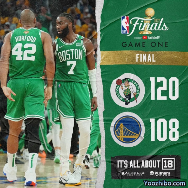 万众瞩目的NBA总决赛今日正式打响,勇士坐镇主场迎战凯尔特人,勇士在西决5场比赛击败独行侠率先杀出西部,凯尔特人则凭借抢七扑灭热火的胜利杀出东部。也许是职业生涯如此出色发挥却没能拿到FMVP的激励,库里首节早早进入状态展现惊人射术,他在第一节三分球8投6中一人独砍21分,正是他的出色发挥帮助球队顶住对手轮番冲击取得4分领先;不过绿军在库里爆发的情况下没有落后太多也说明了他们的表现并不差,而次节随着库里状态回落一分未得,绿军开始反扑扭转局势,节中靠着一波9-0的攻势抹平劣势,上半场即便双探花两人总得分都不如库里的情况下他们仍然反超2分。下半场的“勇三疯”永远都不会缺席,他们在中场休息的调整取得效果,开场在库里和维金斯连续拿分中轰出17-8的攻势扭转局势,这一节他们狂轰38分完全压制对手;但神奇的绿军没有束手就擒,虽然塔图姆依旧低迷,但布朗站出来连砍10分4次助攻成为关键先生,加上怀特和霍福德节中致命的4记三分,绿军轰出29-11的攻势上演神奇大逆转。最终,凯尔特人凭借21记三分客场逆转勇士先下一城,总比分上1-0取得领先。