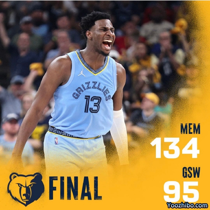 灰熊今日回到孟菲斯主场迎来和勇士的G5之战,上一场勇士主场作战面对缺少莫兰特的灰熊却落后了将近47分钟,不过凭借库里末节独得18分的爆炸发挥上演逆转夺得赛点,这场比赛莫兰特因为膝盖伤势继续缺阵。首节之争灰熊虽然缺少核心但做足准备,他们这一节命中7记三分让勇士非常头疼,同时也凭借出色外围投射取得10分领先;次节灰熊并没有过度倚赖外线投射,相反他们改变策略不断冲击篮下打了对手一个措手不及,他们这一节仅命中一记三分的情况下仍然轰下39分的高分,后半节送出18-3的攻势直接击垮勇士防线,凭借出色的作战策略他们在上半场确立起27分领先。中场休息没能唤醒低迷的勇士,反倒是灰熊外线重新开火单节再送9记三分,这一节灰熊再轰42分并在第三节就取得52分的惊人优势,而勇士这边第三节已经出现20次失误;巨大的分差让末节早早失去悬念,末节双方替补出战局面没有太大改观。最终,灰熊主场狂胜勇士扳回一城,总比分上2-3落后勇士。