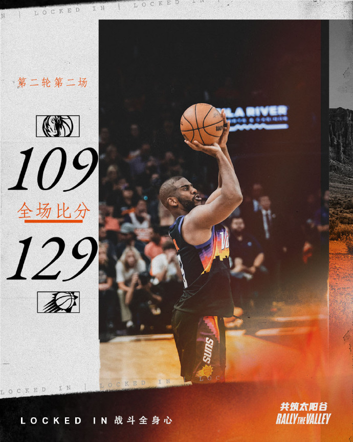 NBA季后赛西部半决赛激战正酣,上场在主场先声夺人的太阳继续迎战独行侠,比赛开始后太阳率先找到状态打出9-0开局,东契奇及时发力单节独得14分,末段独行侠回敬7-0小高潮,首节结束时太阳领先4分,次节回来,丁威迪和贝尔坦斯连中三分,独行侠打出10-0攻击波一举反超,中段太阳内外结合紧咬比分,东契奇连中3记三分稳住局势,半场战罢,独行侠反超2分。易边再战后布克连得8分率队重新占优,中段双方你来我往陷入僵持,保罗跳投稳稳命中,约翰逊联手沙梅特续上火力,三节结束后太阳再次确立6分优势,末节决战,独行侠开局阶段继续追分,但中段他们进攻突然哑-火,保罗和布克先后取分接管比赛,太阳轰出17-2攻击波彻底拉开比分,独行侠选择早早收兵,比赛提前失去悬念,最终太阳129-109大胜独行侠,大比分2-0领先对手。