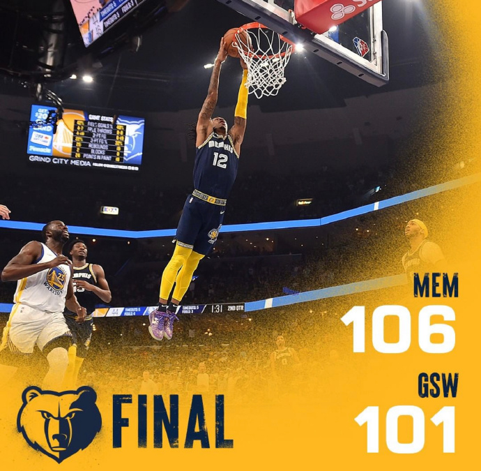 [微博原声集锦] 莫兰特47+8+8 库里27+9+8 普尔20+5 灰熊胜勇士扳平比分1-1