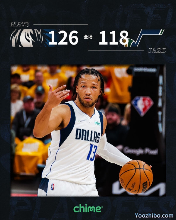 NBA季后赛继续激战,上场险胜爵士的独行侠前往客场再次挑战对手,此役东契奇因为小腿拉伤继续缺阵,此役一上来布伦森延续火力不断砍分,爵士内外结合短暂回应,克莱伯和约什-格林连中三分,首节结束时独行侠领先7分,次节回来,双方延续状态火热对攻,独行侠多点开花继续占优,中段爵士内外结合一度紧咬比分,但随后丁威迪和贝尔坦斯连中三分,独行侠再度打出9-1小高潮,半场战罢,独行侠已经领先17分。易边再战后米切尔突然爆发单节独得18分,爵士接连打出追分高潮蚕食分差,三节结束后爵士只落后6分,末节上来,康利里突外投率队将分差缩小至1分,关键时刻丁威迪和布伦森接连取分,爵士追分未果,丁威迪和布洛克连中罚球锁定胜局,最终独行侠126-118力克对手,大比分2-1反超爵士。