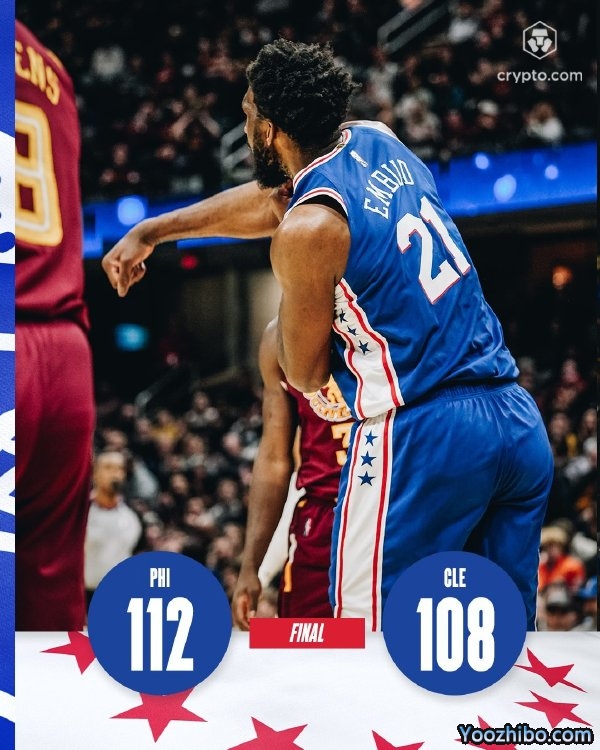 76人(48-30):恩比德44分17篮板5封盖、哈登21分10篮板10助攻、哈里斯11分5篮板、马克西11分、塞布尔4分2抢断2封盖