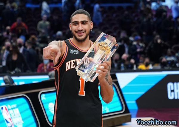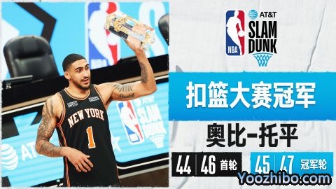 24直播网讯 北京时间2月20日,2022克利夫兰全明星扣篮大赛,纽约尼克斯扣将奥比-托平决赛两扣92分击败金州勇士胡安-托斯卡诺-安德森夺得冠军,生涯首次加冕扣篮王。