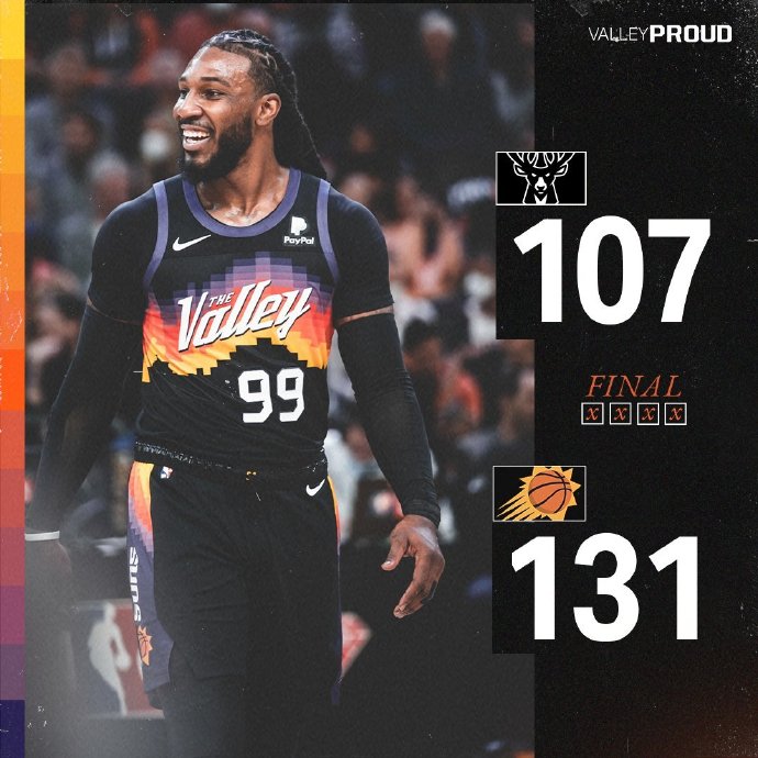 NBA常规赛,太阳今日迎战雄鹿,前者三连胜后继续高居联盟榜首,后者同样是取得四连胜暂列东部第二位。比赛上来太阳进入状态较快,一波6-0完美开局,不过雄鹿随后就将比分追了上来,两队在很长的时间里都保持拉锯,次节雄鹿的命中率开始下降,尤其是在节末被太阳再次打出攻势拉开分差,半场结束时雄鹿落后8分。易边再战,太阳已经完成占据了场上的主动,分差也在末节突破了二十分,比赛彻底失去悬念,最终太阳大胜雄鹿,迎来四连胜的同时也终结了后者的四连胜。