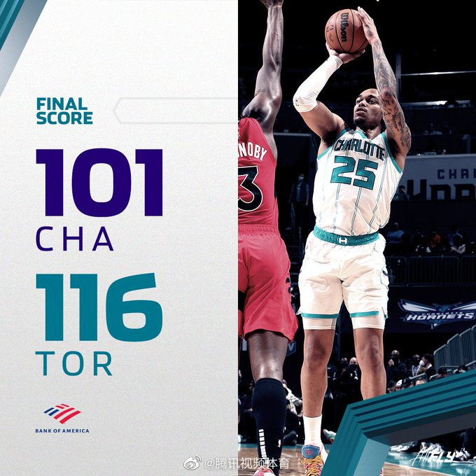 猛龙带着5连胜的良好势头奔赴夏洛特挑战黄蜂,而主场作战的黄蜂近期遭遇4连败排名跌至东部第九。首节之争主场作战的黄蜂仅仅抵抗了半节时间,而猛龙延续近期良好势头多点开花不断打成反击,他们在后半节送出18-6的攻势一举确立起14分优势,次节初猛龙再接再厉再送14-6的攻势取得本场最大的22分领先。黄蜂直到这之后才有所醒悟,凭借末段一波12-4的攻势总算止住颓势并带着15分劣势进入下半场。第三节的黄蜂开始奋力反击,尤其是末段一波14-3的攻势帮助他们将分差追至5分看到希望,然而末节开局他们再一次失准,这也导致猛龙即便5次罚球仅命中1球也感受不到任何威胁,而随着范弗里特两记三分稳稳命中,猛龙重新取得两位数领先奠定胜局。最终,猛龙客场击败黄蜂迎来6连胜。
