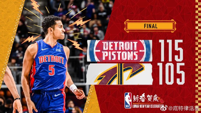 NBA常规赛继续进行,北京时间今日除夕,活塞主场迎战骑士,活塞本赛季以练兵为主,目前4连败排在东部第14位;骑士则是继续高歌猛进,一波3连胜升至东部第4位。开局骑士反客为主迅速进入状态,打出15-0梦幻开局,但后半节弗兰克-杰克逊站出来连续在外线发炮帮助活塞回应小高潮追到差5分,次节双方展开拉锯战,活塞依靠年轻冲劲一直咬住比分,但加兰德找到外线手感接连3记三分帮助骑士守住6分领先。第三节,骑士内线进攻继续施压,几度领先到双位数,但贝站出来也能连续冲击内线帮助活塞咬住4分分差,末节双方命中率都有下降,骑士突然陷入得分荒,活塞抓住机会打出13-0攻击波反超比分,随后骑士还是连续攻不进,活塞打出气势反超到双位数,最终活塞逆转骑士,终止4连败的同时也终结对手3连胜。
