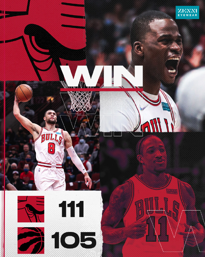 NBA常规赛公牛主场对阵猛龙,本场比赛范弗里特缺席。公牛以9-0开局,德罗赞、拉文和武切维奇轮番拿分帮助公牛建立起两位数优势,猛龙连续三分缩小分差。第二节猛龙一度追平比分,不过公牛再次掀起高潮建立领先,上半场公牛67-50领先。下半场回来猛龙掀起反扑一路将比分追上,他们在第四节一度完成反超,公牛及时稳住阵脚,特伦特累计2个技犯遭到驱逐,武切维奇关键三分杀死比赛,最终公牛111-105力克猛龙。
