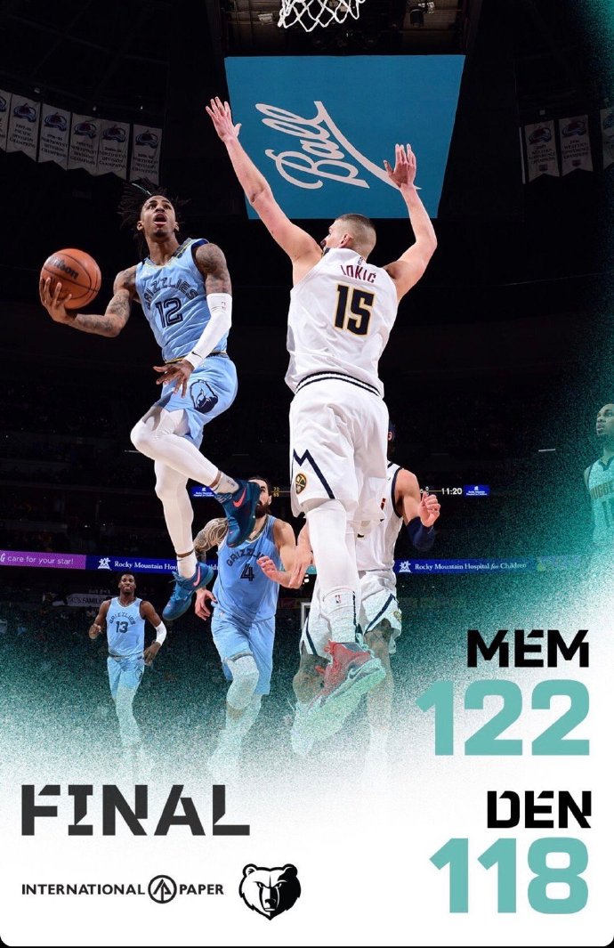[微博全场集锦] 莫兰特38+6+6 约基奇三双 巴顿27+5+8 灰熊力克掘金