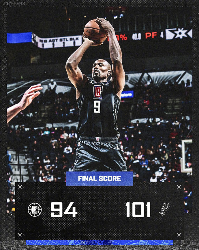 快船(21-23):科菲20分5篮板,巴图姆13分7篮板,莫里斯15分6篮板5助攻,祖巴茨6分9篮板2助攻,雷吉7分2篮板4助攻,伊巴卡10分10篮板2封盖,哈尔滕斯泰因6分,布莱德索7分5篮板5助攻2抢断,曼恩6分4篮板3助攻,波士顿4分6篮板3助攻