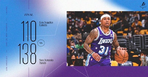 NBA常规赛继续进行,湖人主场迎战马刺,湖人本赛季可算是命途多舛,3连胜的大好势头在浓眉受伤后戛然而止,目前已经3连败暂时排名西部第6,马刺则是排在西部第11位,本场比赛也是以斯台普斯中心的谢幕战,对于湖人球迷来说意义非凡。开局马刺展现出不错的外线手感,而湖人则是詹姆斯攻防两端一人扛起球队,节末湖人换上轮转阵容后由于身高的天然劣势被马刺拿到9分领先,次节詹姆斯继续里突外投帮助湖人追分,无奈于其他球员实在不给力,小托马斯和艾灵顿防守端一直被针对,马刺内线优势巨大保持11分领先。易边再战,马刺进攻端还是保持不错命中率,分差一直在10分以上,而湖人进攻端继续挣扎,节末威少连续发力虽然单节砍下17分,但湖人还是落后了13分,末节詹姆斯带领湖人多次试图反击追分,但外线手感不开终归没有成功,反倒是沃克率领马刺将分差拉开至20分以上,最终马刺轻取湖人,送对手4连败。