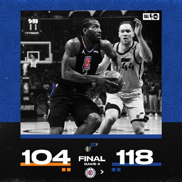 快船今日坐镇主场迎来和爵士的G4争夺,上一场爵士不敌快船未能夺得赛点。首节之争快船做足准备上来就是万箭齐发下起三分雨,系列赛前三战三分总计16投1中的莫里斯贡献三记三分,他和小卡首节联手攻下23分,而爵士这边手感冰冷无法匹敌对手,首节他们就落后快船17分。次节之争米切尔站出来命中4记三分独砍17分,奈何快船这边攻势如潮,双核外加莫里斯半场合力贡献56分,快船带着24分的领先进入下半场。易边再战的爵士终于在进攻端占据上风,他们抓住快船进攻端回落的机会一度追至14分,奈何对手总有爆发的时候,节末快船回敬7-0的攻势重新拉开比分掌控比赛。巨大的分差让末节早早失去悬念,纵使爵士仍不放弃一度将分差追至10分,但时间不足以他们上演逆转。最终,快船主场再胜爵士连扳两场,总比分上2-2战成平手。