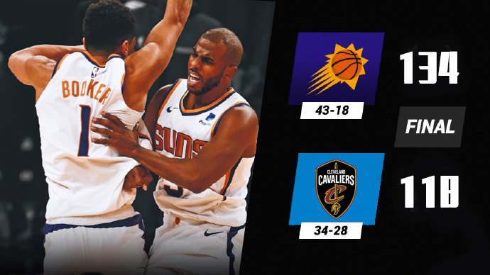 NBA常规赛太阳对阵骑士,近来太阳取得4连胜仍旧紧追爵士排在西部第二,骑士则是遭遇6连败。开场后布克就展现出火热手感,他一人独得11分,但骑士多点开花反而取得领先,不过佩恩和萨里奇替补登场后发挥出色帮助太阳反超比分。第二节回来骑士首先外线开张,保罗逐渐找到状态,他除了自己砍分还不停为队友送出助攻,上半场太阳59-53领先骑士。下半场回来骑士仍旧率先外线发力,不过在艾顿的发挥下太阳一度领先到两位数,但多特森和塞克斯顿两人联手掀起反扑帮助骑士追平比分。第四节场上局面仍旧胶着,保罗带领太阳始终保持略微优势。最后阶段奥科罗连续强硬突破帮助骑士将比赛拖入加时。加时赛中骑士突然断电,太阳一波15-0的攻势直接拉开比分锁定胜局,最终太阳加时134-118拿下骑士取得5连胜,骑士遭遇7连败。