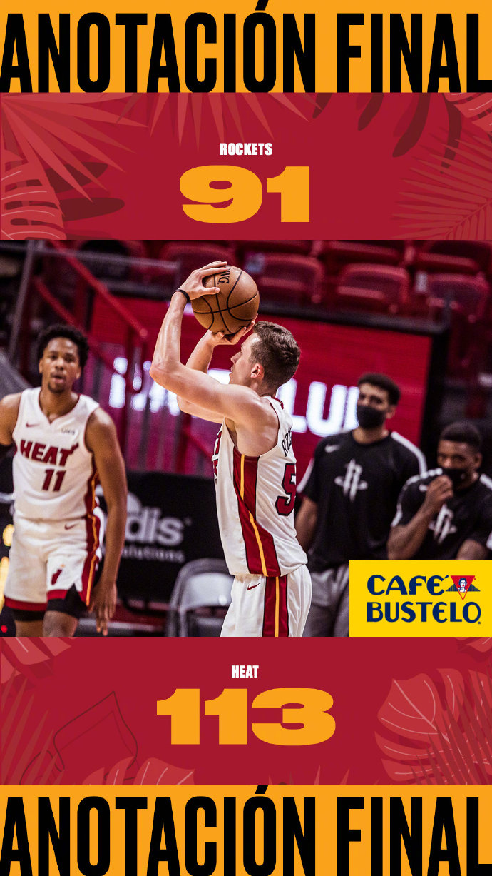 24直播网4月19日讯 火箭做客迈阿密挑战热火,两队都是背靠背作战,火箭昨日击败魔术结束自己的5连败,热火则力克篮网终结3连败,此役巴特勒、阿德巴约、奥拉迪波和希罗均缺阵,沃尔则复出参赛。首节纳恩和邓罗外线手感火热,热火一波13-2的攻击波确立领先优势,不过沃尔和伍德单节合砍24分带领火箭在节末迎头赶上,次节火箭的板凳球员更胜一筹完成了比分反超,虽然热火此后全力反扑,但靠着泰特的补篮火箭还是带着1分的优势进入下半场。下半场火箭没能顶住对手的攻势再度在第三节崩盘,热火单节七记三分彻底射晕火箭,一波17-2的攻势牢牢掌握比赛主动,末节火箭进攻毫无起色,纳恩和德拉季奇再送一波三分雨彻底终结比赛悬念,最终热火主场113-91战胜火箭。