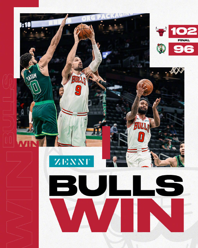 NBA常规赛,凯尔特人坐镇主场迎战公牛。在和库里的飙分大战中带队赢球后,塔图姆已经率领凯尔特人取得了一波六连胜,排名也是上升到了东部第五。而公牛近况不佳,击败骑士后刚刚结束自己的五连败,目前是排在东部倒数第五。本场比赛公牛拉文及凯尔特人斯玛特、沃克、富尼耶均不会出战。一开场,凯尔特人坐拥主场之利开局9-0,公牛及时找回状态连续三分命中缩小分差,首节打完凯尔特人领先6分。次节比赛,两队命中率都出现下降,凯尔特人率先发力一度拉开两位数分差,武切维奇依靠个人能力连续拿分,凯尔特人48-42领先6分进入下半场。易边再战,公牛持续发力,科比-怀特单节拿到10分帮助公牛反超8分结束第三节。末节争夺,凯尔特人连续三分命中一度扳平比分,但连续出现3次失误,科比-怀特关键时刻四罚全中杀死比赛。最终,公牛客场爆冷击败凯尔特人,终结了对手的六连胜。