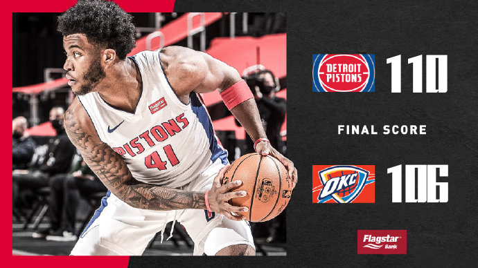 NBA常规赛,活塞主场迎战雷霆。活塞近期遭遇了三连败,继续排在东部垫底,萨迪克-贝越发成熟的表现是球队为数不多的亮点。雷霆更是遭遇了一波八连败,继续稳居西部倒数第三,在连败期间他们一共输给了对手219分历史最多。本场比赛格兰特因伤缺阵。一开场,两队比分紧咬,雷霆连续强攻内线得手确立优势,贝兹利单节10分帮助雷霆领先7分结束首节。第二节,雷霆持续发力一度将分差拉开到15分,约什-杰克逊和萨迪克-贝联手率队反击,雷霆命中率下降,双方打成56平进入下半场。易边再战,活塞延续火力一度把分差拉开到两位数,雷霆轮换阵容连续拿分,三节打完雷霆落后7分。末节争夺,雷霆奋力反击一度把分差缩小到1分,斯图尔特连续内线得手,活塞再次将分差拉开到两位数,雷霆连中三分还是无力回天。最终,活塞主场战胜雷霆, 结束三连败的同时送给对手九连败。