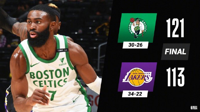 NBA常规赛,湖人今日迎战凯尔特人,前者上场比赛战胜黄蜂排在西部第五位,而后者则是取得四连胜同样排在东部第五位,本场德拉蒙德和大莫里斯均缺战。比赛上来凯尔特人就率先进入状态,打出一波7-0的完美开局,而湖人首节前半段的进攻表现实在低迷,分差迅速就达到了两位数,次节湖人虽然有反扑的势头,但在半场结束时场上的分差仍有14分。易边再战,湖人的进攻有了起色,不过他们依旧无法限制住对手的得分,在末节场上的分差继续突破二十分,虽然深度轮换阶段湖人将分差缩小回了个位数,但终究没能改变比赛结果。最终凯尔特人力克湖人,迎来五连胜。