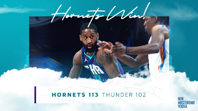 NBA常规赛黄蜂对阵雷霆,雷霆近来遭遇3连败,开场后黄蜂以8-0开局,不过波库舍夫斯基手感火热连中三分帮助雷霆追上比分,第二节回来雷霆更是一度反超比分,但黄蜂迅速调整状态夺回领先,上半场黄蜂56-51领先5分。下半场回来黄蜂始终牢牢压制住雷霆,虽然雷霆努力追分,但黄蜂始终保持两位数优势,最终黄蜂113-102送给雷霆4连败。