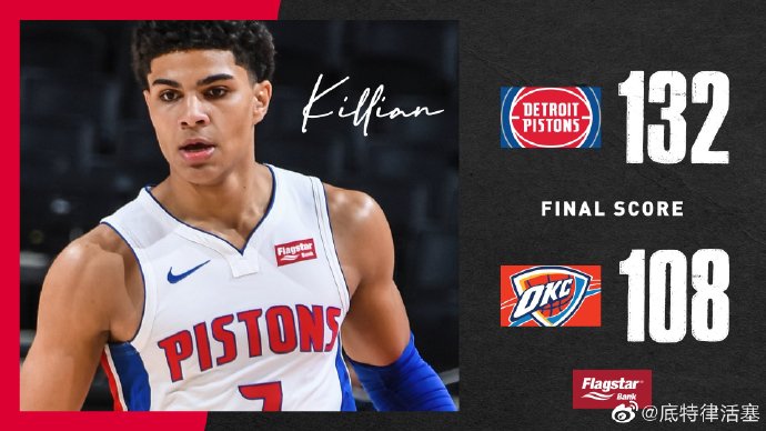 今日NBA常规赛,活塞迎战雷霆,活塞上场44分不敌尼克斯,而雷霆则48分不敌开拓者,双方今日均渴望获得一场胜利。比赛开始后,活塞迅速找到进攻状态,接连打出进攻高潮迅速将分差拉大,雷霆虽有调整,首节结束仍落后活塞11分。第二节前半段,活塞延续首节进攻火力,分差最多时已经来到23分,雷霆外线手感逐渐回暖,半场结束,活塞58-47依然保持11分领先。易边再战,活塞内外兼修持续发力,不断扩大领先优势,雷霆进攻受阻,三节战罢,活塞将领先优势扩大至16分。最后一节,活塞主力没有登场,雷霆进攻效率依然不高,活塞一度将分差扩大至27分,比赛早早失去悬念。最终活塞132-108轻取雷霆。