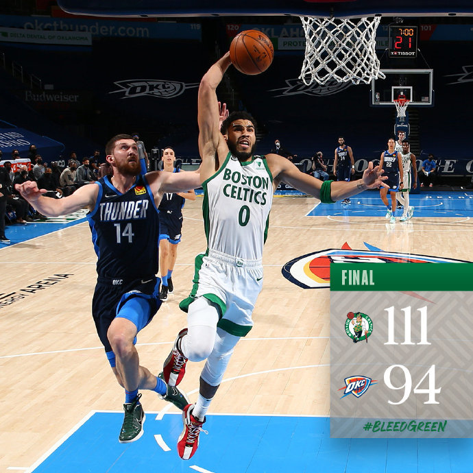 [微博全场集锦] 塔图姆27分 杰伦-布朗25分 摩西-布朗21+23 绿军逆转雷霆