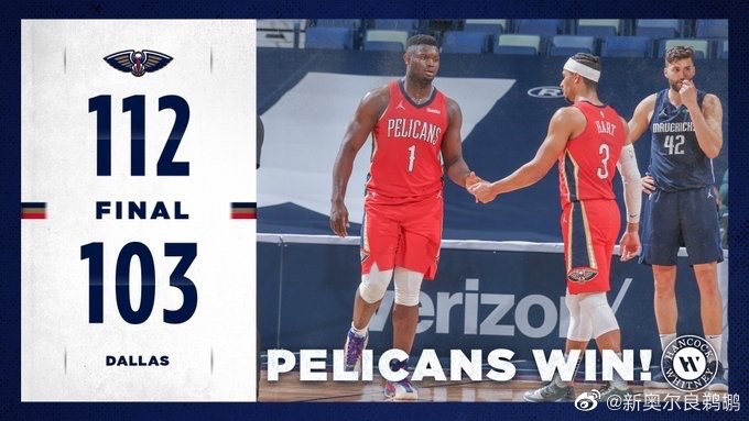 [微博全场集锦] 锡安38+5+6 沃克20分 小哈达威30+5 鹈鹕击退独行侠
