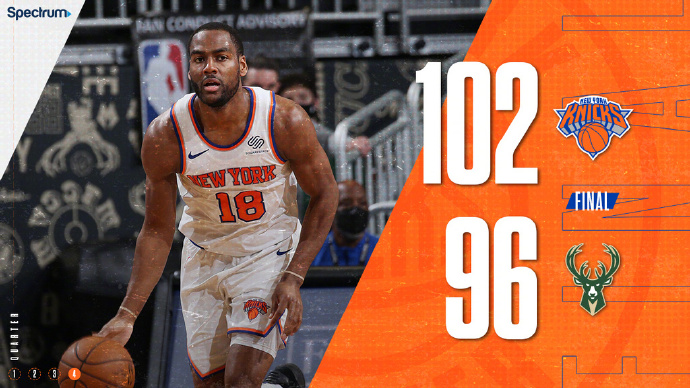 昨日不敌凯尔特人的雄鹿今日背靠背迎战尼克斯,此役雄鹿的米德尔顿、字母哥、霍勒迪、迪文岑佐、波蒂斯和尼克斯的兰德尔、布洛克均缺席,诺埃尔和罗斯则复出。首节尼克斯单节6记三分击溃了对手的联防,然而雄鹿在主将缺阵时并没有慌张,他们在T-阿德托昆博和康诺顿等人的带领下很快便打出8-0的小高潮将比分反超,尼克斯则在此后及时找回手感又重新确立领先优势。下半场两边开始拉锯战,雄鹿刚刚反超3分,尼克斯就立马回敬9-0攻势,末节尼克斯一阵三分雨将比分拉开,但T-阿德托昆博却用全明星级别的表现将11分的分差抹平,关键时刻伯克斯命中三分杀死比赛,最终尼克斯客场102-96险胜雄鹿。