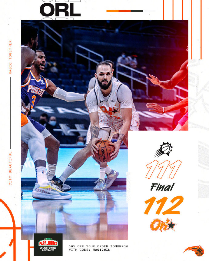 NBA常规赛,魔术主场迎战太阳,前者最近状态一般2连败已经排在东部倒数第二位,后者则是3连胜已经跃居到西部次席,双方实力还是比较悬殊。开局阶段太阳凭借开局的小高潮建立领先,随后魔术连续的三分帮助追近分差,布克站出来连续中投帮助太阳首节结束领先8分,次节魔术也打出一波进攻波抹平分差,双方展开拉锯战,半场结束双方打平。下半场回来,太阳一波11-0重新建立领先优势,武切维奇苦苦支撑着魔术进攻帮助追分,太阳带领5分优势进入末节,末节魔术打出10-4开局再次反超比分,随后双方展开胶着拉锯战,保罗展现老将风采依靠经验连续取分帮助太阳咬住比分,最后时刻比分交替领先,富尼耶上篮绝杀帮助魔术险胜太阳,终结对手3连胜。