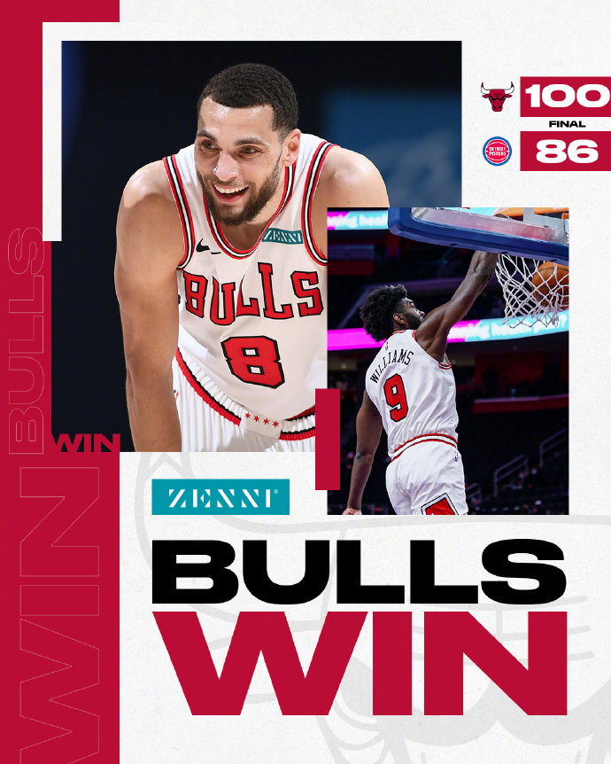 活塞主场迎战公牛,两连胜的活塞目前东部垫底,公牛则距离东部第8黄蜂还有1.5个胜场。首节格兰特状态爆表,单节砍下14分率队确立领先优势,次节轮到斯图尔特大爆发,这位一年级新秀里突外投无所不能,另一边公牛内线加福德和马尔卡宁也是轮番爆发,正是靠着他们俩的出色发挥,公牛才在半场结束前反超了比分。下半场,公牛继续强势发挥,拉文也找到了些许手感,自第二节末开始他们打出一波32-15的高潮将局势彻底翻转,末节怀特、阿西迪亚科诺、瓦伦丁又连中三记三分,公牛再送一波11-4攻势将分差拉大到17分,活塞此后虽竭力反击,然而缺少超级球星让他们的进攻效率实在太低,抹平分差自然也是遥不可及,最终公牛客场100-86击败活塞。