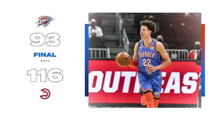 NBA常规赛老鹰对阵雷霆,老鹰状态火热拿下6连胜。开场后特雷-杨就展现出火热状态帮助老鹰早早取得两位数优势,虽然雷霆外线找到手感连追三分,但老鹰在第二节再次掀起攻势继续扩大领先,上半场老鹰61-41大比分领先。下半场回来亚历山大凭借一己之力频频砍分,但双拳难敌四手,科林斯和博格达诺维奇两人联手帮助老鹰始终保持巨大优势,第四节雷霆也无力追分,最终老鹰116-93轻松拿下雷霆取得7连胜。