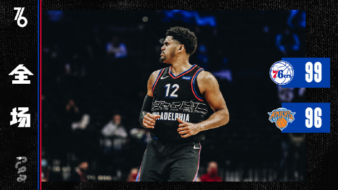 目前排名东部第一的76人主场迎来东部第七尼克斯的挑战,恩比德和小佩顿继续因伤缺战,罗斯则因为防疫隔离无缘本场比赛。两队开场后进攻效率都不高,半节过后比分依旧是10-4,76人靠着西蒙斯和哈里斯的强硬表现艰难度过开局的低迷,尼克斯则在次节中段突然发力,一波7-0小高潮确立了领先优势。下半场库里全面爆发单节砍下14分,他与哈里斯携手打出8-0攻击波将分差一度缩小到2分,然而尼克斯很快就在伯克斯和巴雷特的带领下稳住局面,末节76人三军用命,库里的三分球终于帮助球队完成反超,尼克斯进攻连续受挫末节仅得到14分,奎克利最后时刻错失扳平三分,最终76人99-96逆转尼克斯。