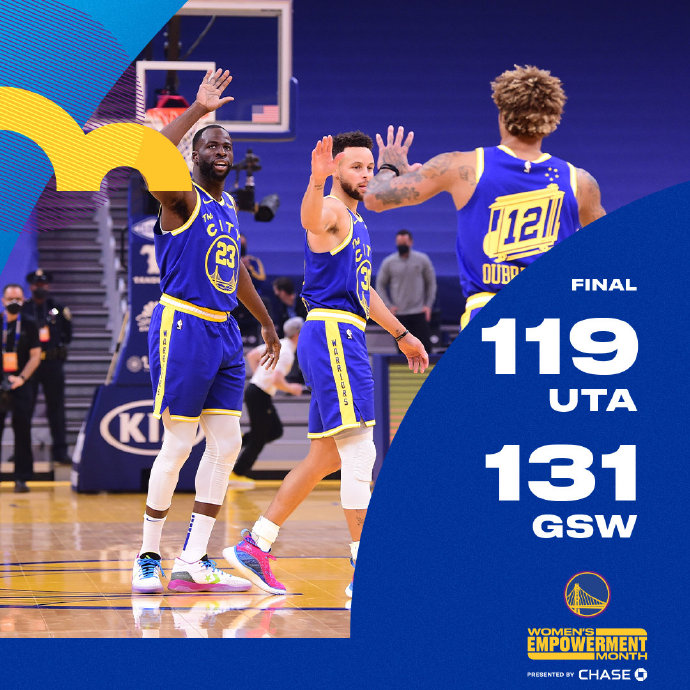 勇士主场迎来爵士的挑战,前者最近4连败掉至西部第9位,状态急需调整;而后者上一场轻取火箭稳居西部首位。开局上来双方都比较慢热,中段库里带领勇士打出15-0的高潮一举奠定优势,随后双方展开拉锯战,首节结束勇士领先11分。次节爵士抓住勇士替补没经验打出7-0的开局将分差追近,后半段勇士抓住爵士的连续失误,几个关键三分帮助勇士稳住局势,格林最后连续得分帮助勇士半场结束依然领先13分。易边再战,米切尔和戈贝尔内外联手帮助爵士追近比分,但勇士总是有人能回应上,三节结束勇士还是领先9分。末节爵士再次打出6-0开局随后将比分缩小至1分,但勇士替补们顽强抵抗守住优势,后半段勇士连续三个三分再次拉开分差,爵士连续犯错误失去翻盘希望,最终勇士击退爵士,终结自己的4连败。