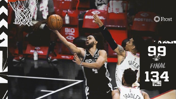 [微博全场集锦] 哈里斯23+9+7 西蒙斯14+9 怀特17+4帽 76人大胜马刺获五连胜