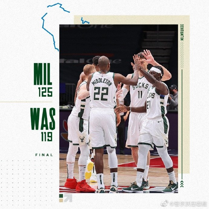 常年的东部霸主雄鹿近期状态逐渐回暖,主要原因还是后场核心霍勒迪的回归以及字母在与快船一战后,频繁出现在无球侧,而比肩奥尼尔的禁区统治力也让布登霍尔泽终于找到了最大化字母的使用方式。反观奇才,全明星休整后遭遇连败,内线防守惨不忍睹,而本场比尔和高炮台贝尔坦斯的因伤缺席更是让球队雪上加霜。不过孤军奋战独自带队的威少并没有轻言放弃,首节送出10+3+4+2抢断+2三分的全面数据,残阵奇才也与雄鹿齐头并进。次节顽强的奇才抓住雄鹿过多的失误和手感的下降,节中打出16-4的进攻高潮一度拉开了比分,不过节末字母哥的突然爆发连得七分,也帮助雄鹿快速缩小分差。半场结束,奇才65-64领先雄鹿1分。休息回来的雄鹿如梦初醒,一度打出8-0的攻击波反超比分,不过本场手感火热的八村塁单节再砍10分,奇才也稳住局面夺回领先。末节状态同样火热的字母哥反击暴扣得手,雄鹿也在他带动下再次打出15-6的进攻高潮把比分反超,危难时刻,方显英雄本色,威少连得十五分帮助奇才最后时刻追平比分,不过关键时刻的绝平投篮被篮板拒绝终究还是功亏一篑,最终,八人上双的雄鹿客场以125-119险胜残阵奇才,喜迎三连胜。