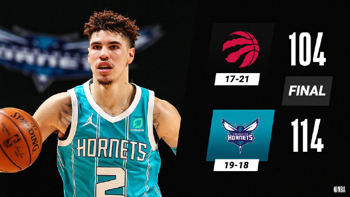 今日NBA常规赛,猛龙客场挑战黄蜂。黄蜂取得两连胜排名东部第7,猛龙多人缺战遭遇3连败排名东部第9。比赛开始,黄蜂外线手感爆棚下起三分雨,一波25-4迅速建立领先优势,之后猛龙手感略有回升但黄蜂依然领先20分结束首节。次节刚开始,黄蜂延续三分线外手感,但后半节进攻效率下降,猛龙抓住机会打出一波11-0,最终黄蜂67-52领先15分进入下半场。易边再战,黄蜂一波9-0扩大比分,三分线外手感依旧无解,黄蜂98-73领先25分进入末节。末节上来,猛龙进攻效果不佳,黄蜂继续扩大领先优势,猛龙早早放弃比赛,最终黄蜂114-104战胜猛龙送其4连败。