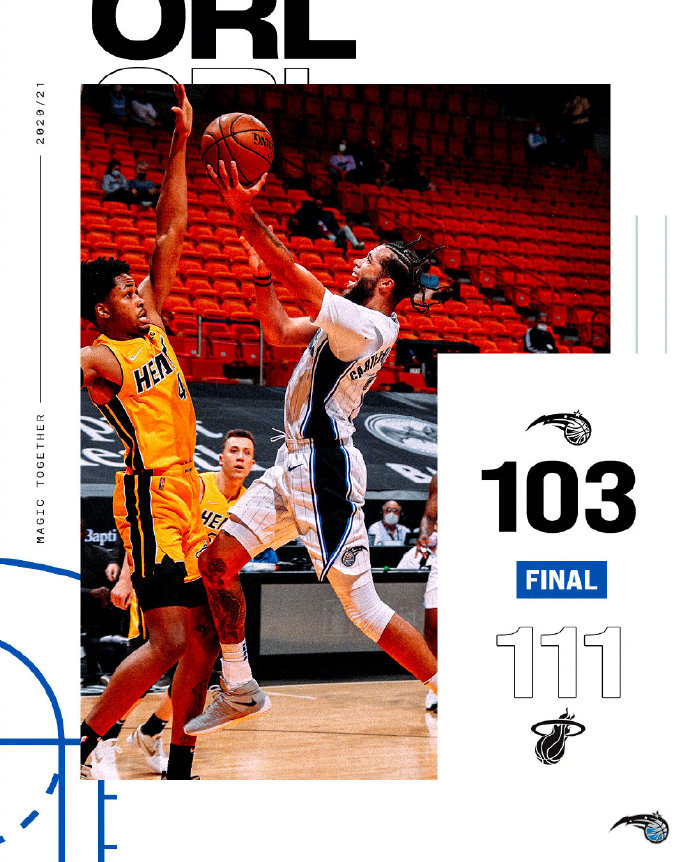 NBA常规赛,全明星假期过后,五连败的魔术奔赴迈阿密客场挑战热火,后者状态正盛,上一场击败鹈鹕取得近十场比赛的第七场胜利,目前位居东部第六。前者上一场惨遭老鹰逆转,遭遇五连败,目前排名东部倒数第二。本场比赛阿德巴约、富尼耶、特伦斯-罗斯因伤缺战,莱昂纳德因为不当言论被禁赛一周,阿隆-戈登则迎来复出。首节缺阵15场后复出的阿隆戈登表现不俗,开局连续得分为球队鼓舞士气。热火13中6的三分球一度为球队取得7分领先,但节末被魔术打出9-0攻击波将比分反超。次节开局,双方命中率都不高,后半段双方开始互飙三分,两队始终保持交替领先的状态,谁也没能拉开分差。凭借半场11记三分的出色手感,热火微微领先结束上半场。易边再战,双方轮流打出高潮,魔术培根突然发力,一人连得8分帮助球队反超比分,随即被热火反打一波6-0。随后双方展开拉锯战,最终以82平进入第四节决战。末节上来,魔术依靠武切维奇在内线的优势和牵制力以及培根的火热手感不停取分,热火则在巴特勒的率领下稳扎稳打始终保持着领先优势,并在最后一分钟将分差拉开到10分,最终魔术客场不敌热火,苦吞六连败。